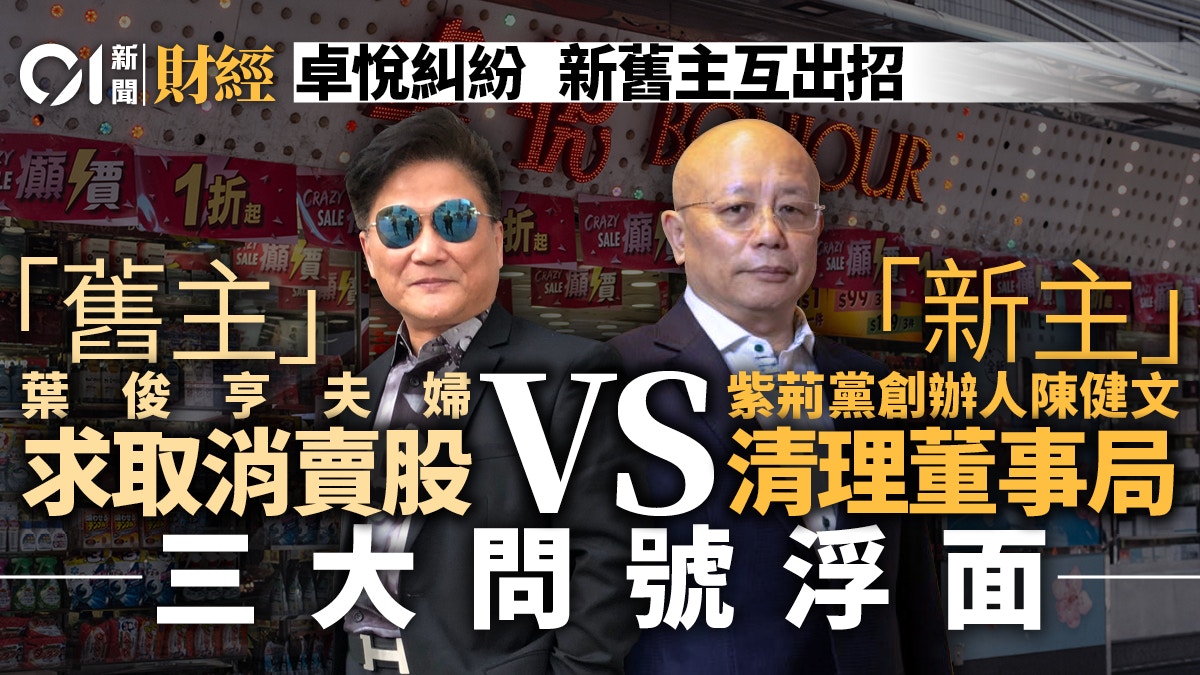 卓悅拆局 葉俊亨夫婦求取消賣股新舊股東角力三大問號逐浮面 香港01 財經快訊