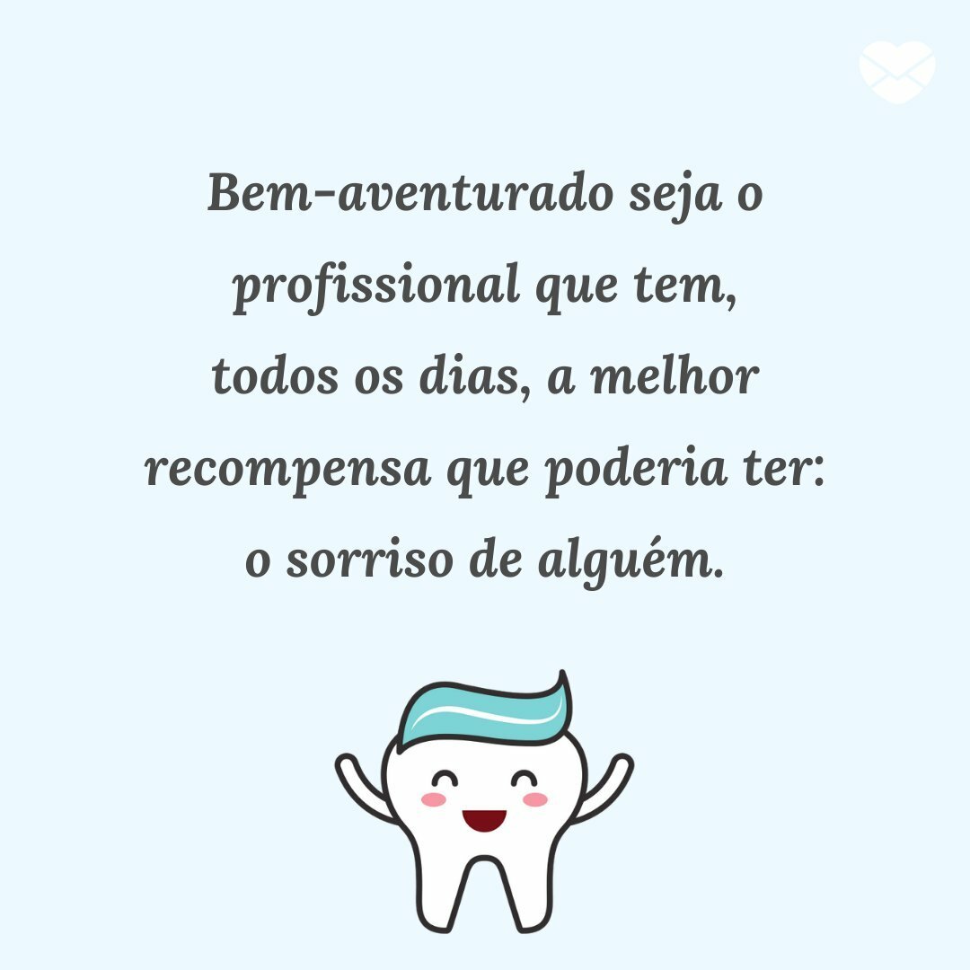 Feliz Dia do Dentista. 25- Bem-aventurado seja o profissional que tem todos os dias a melhor recompensa que poderia ter.